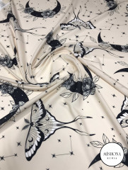 Krem Fon Kelebek ve Çiçekli Ay Desenli Giyimlik Kumaş