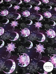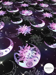 Mor & Siyah Fon Ay ve Güneş Temalı Astrolojik Desenli Giyimlik Kumaş