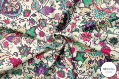 Krem Fon Büyük Goblen Çiçekli Giyimlik Kumaş
