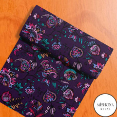 Mor Zeminli Goblen Çiçekli Giyimlik Kumaş