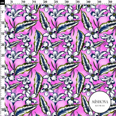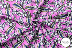 Pembe Fon Tropikal Çiçekler Desenli Giyimlik Kumaş