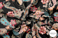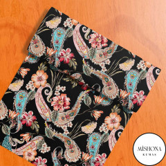 Siyah Fon Renkli Goblen Çiçekli Giyimlik Kumaş