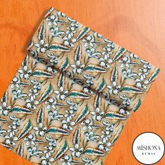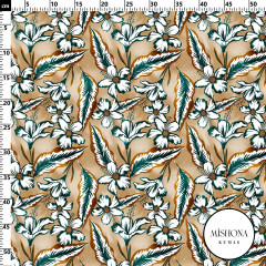 Taba Fon Tropikal Çiçekler Desenli Giyimlik Kumaş